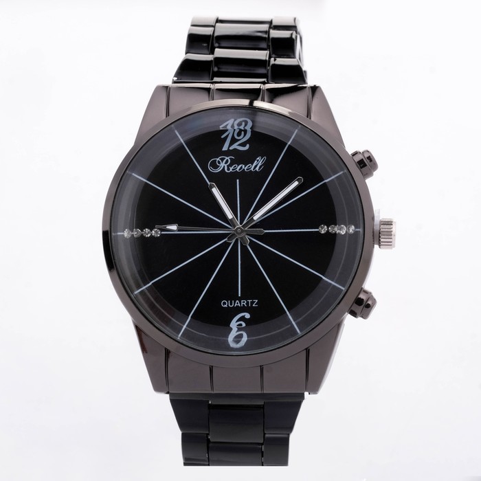 Часы мужские наручные кварцевые, циферблат d=4 см, длина l=25.5 см, черные, с белым циферблатом