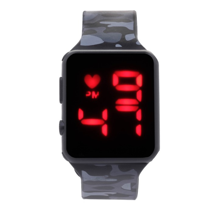 Часы наручные электронные, силиконовым ремешком, синий камуфляж