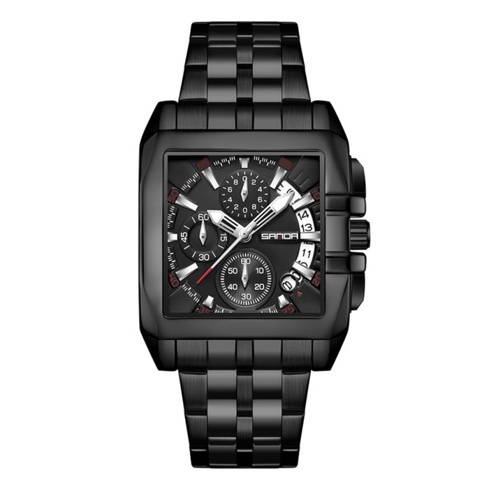 Часы наручные, d=4.5 см, длина ремешка l=27 см, календарь, хронограф, водонепроницаемые, светящиеся, черные