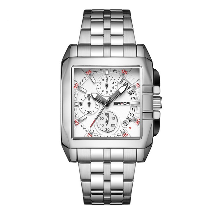 Часы наручные, d=4.5 см, длина ремешка l=27 см, календарь, хронограф, водонепроницаемые, светящиеся, серебро