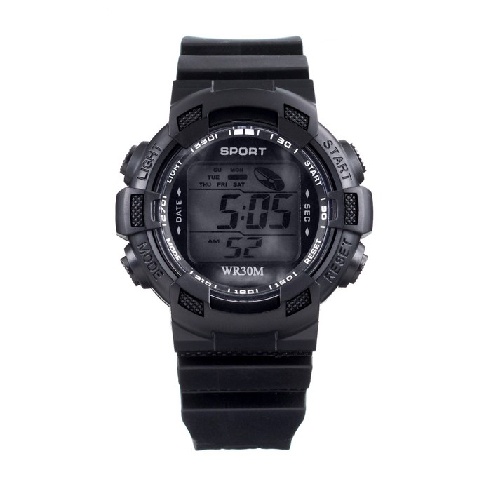 Часы наручные электронные, с будильником, d-5.3 см, ремешок l-26 см, 5 ATM, черные