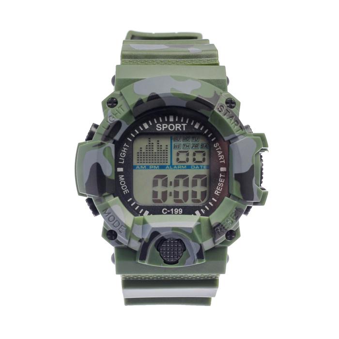 Часы наручные электронные мужские, с будильником, календарем, d-5.6 см, l-20.5 см, 3 ATM, зеленые