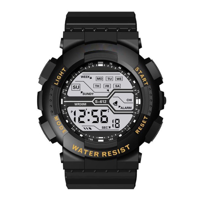 Часы наручные электронные, d-4.1 см, будильник, календарь, водонепроницаемые, черные
