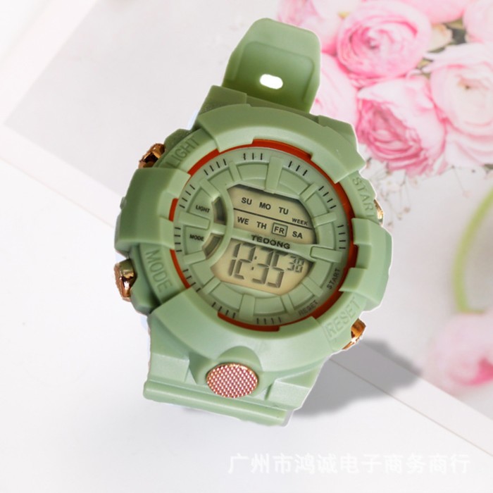 Часы наручные электронные, d-4.5 см, с будильником, зеленые