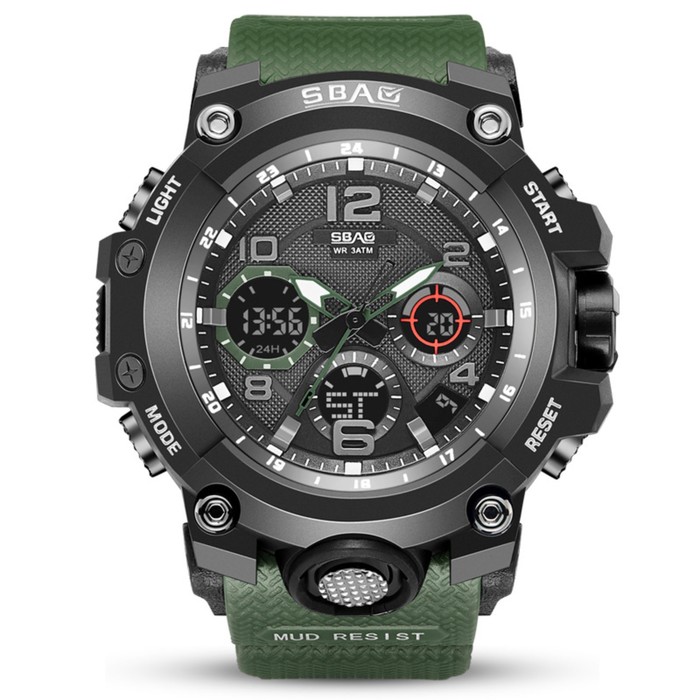 Часы наручные электронные SPORT, d-5 см, ремешок силикон 24.5 см, хаки