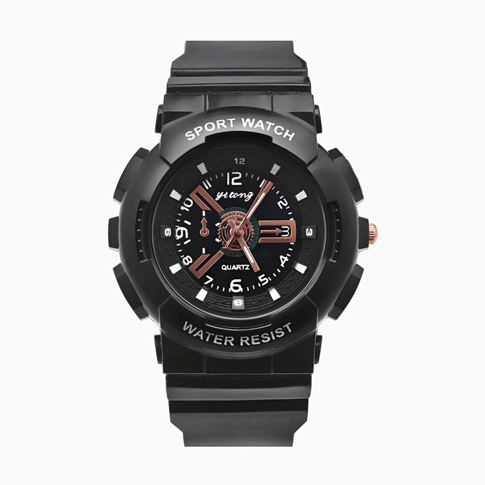 Часы наручные кварцевые мужские, с календарем, d-4.2 см, ремешок l-26 см, 3 АТМ, черные