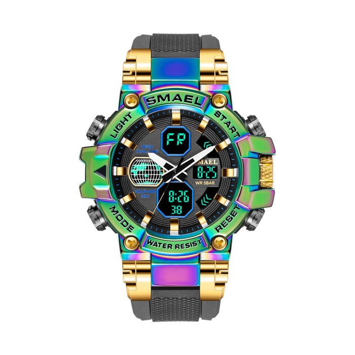 Часы наручные электронные, с будильником, d-5.5 см, ремешок l-25.5 см, 5 ATM, градиент