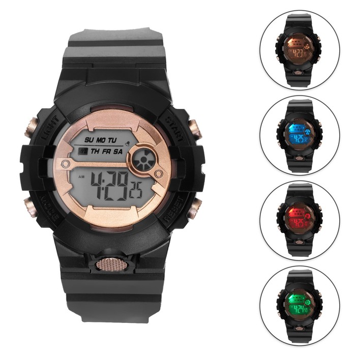 Часы наручные электронные мужские, с будильником, календарем, подсветкой, d-5.8 см, l-21.5 см, 3 ATM