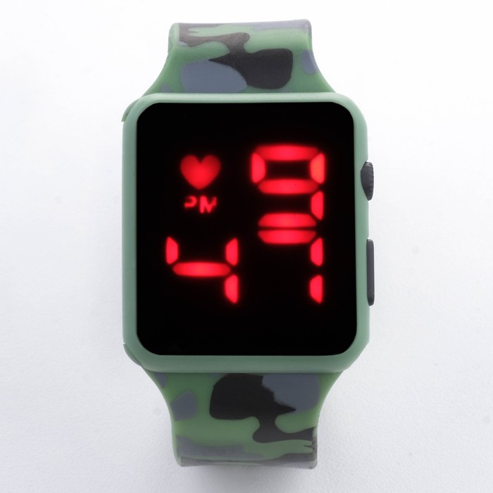 Часы наручные электронные с камуфляжным, силиконовым ремешком, зелёный камуфляж