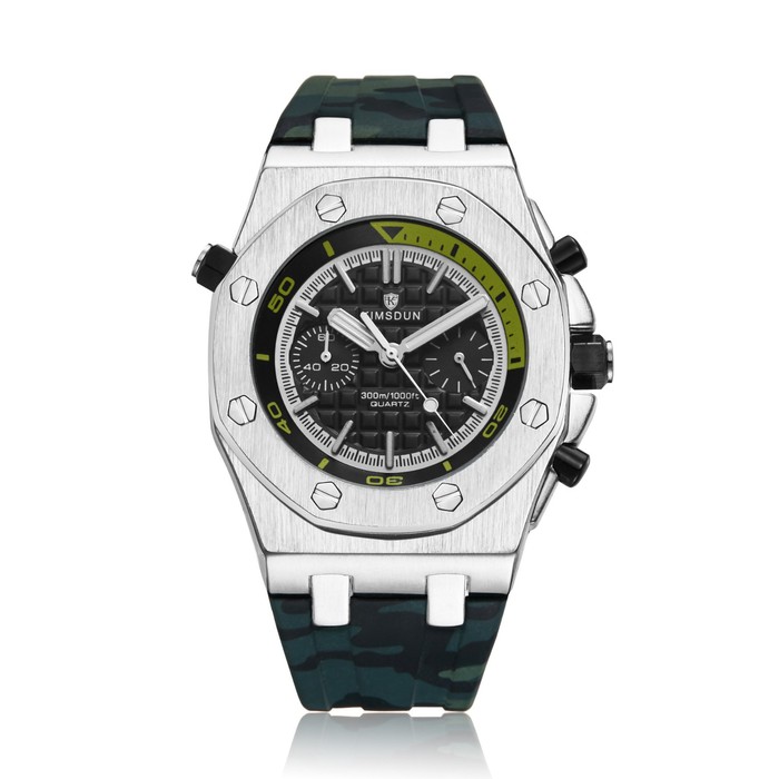 Часы наручные, d-5.1 см, водонепроницаемые, хронограф, ремешок силикон, светящиеся