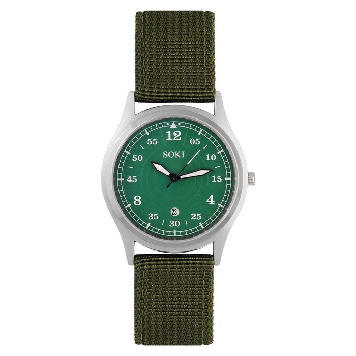 Часы мужские наручные кварцевые, циферблат d=4 см, длина l=25.5 см, зелёные, с белым циферблатом
