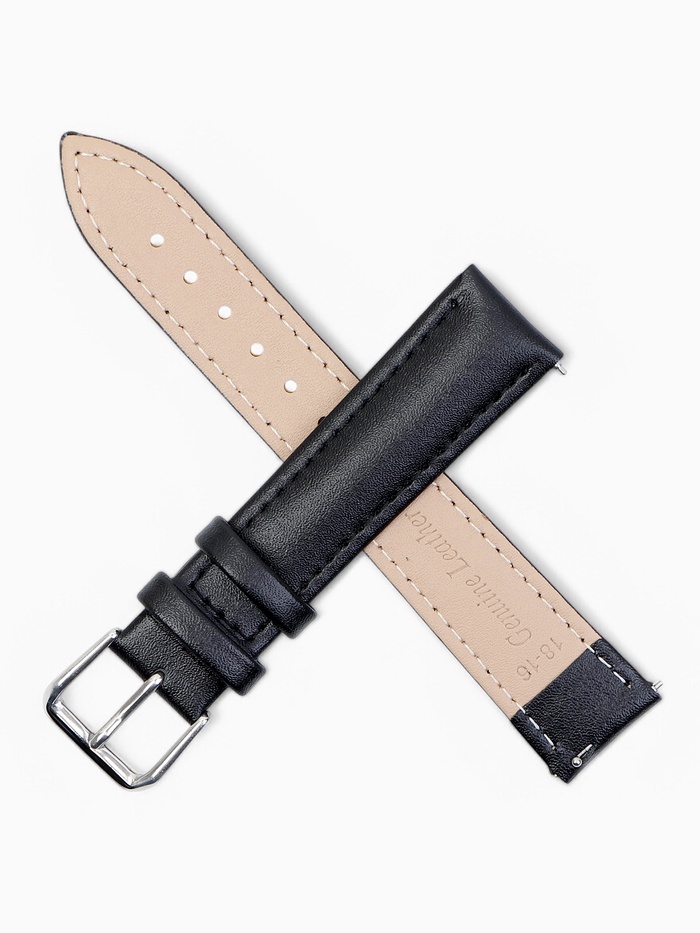 Ремешок для часов кожаный с быстросъемными шпильками, 18 мм, l-20 см, черный