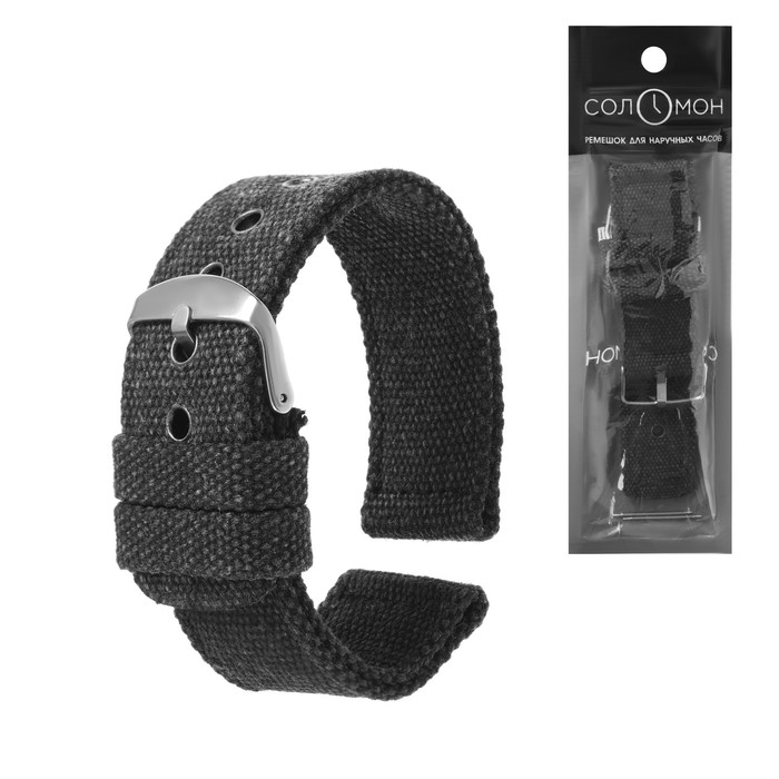 Ремешок для часов "Соломон", 24 мм, текстиль, l-22 см, черный