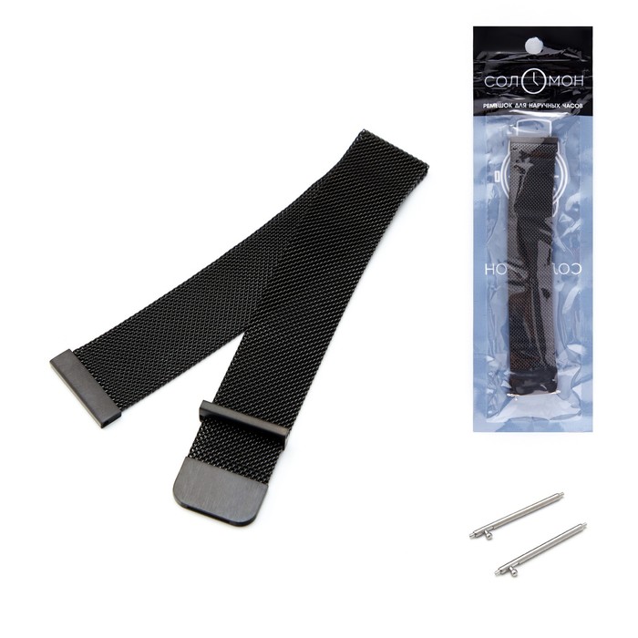 Ремешок для часов "Соломон", 20 мм, металл, l-17 см, черный хром