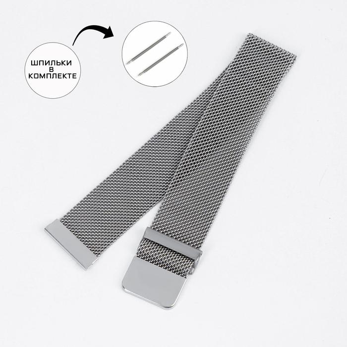 Ремешок для часов, 22 мм, l-17.4 см, шпиньки в комплекте, серебро