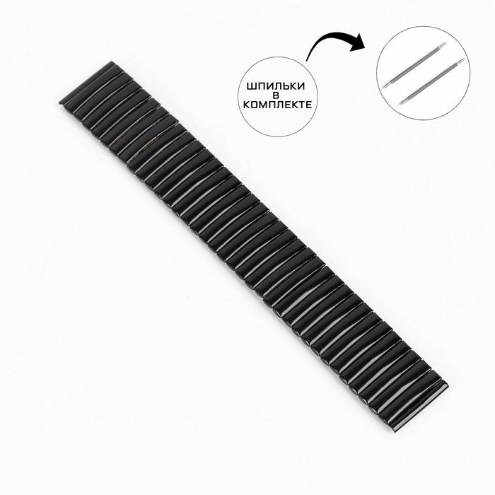 Ремешок для часов "Соломон", 20 мм, металл, l-17 см, черный хром