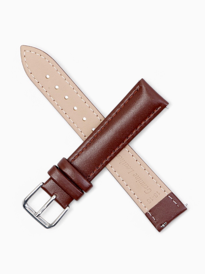 Ремешок для часов кожаный с быстросъемными шпильками, 18 мм, l-20 см, коричневый