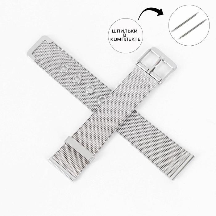 Ремешок для часов, 20 мм, l-17.2 см, шпиньки в комплекте, серебро