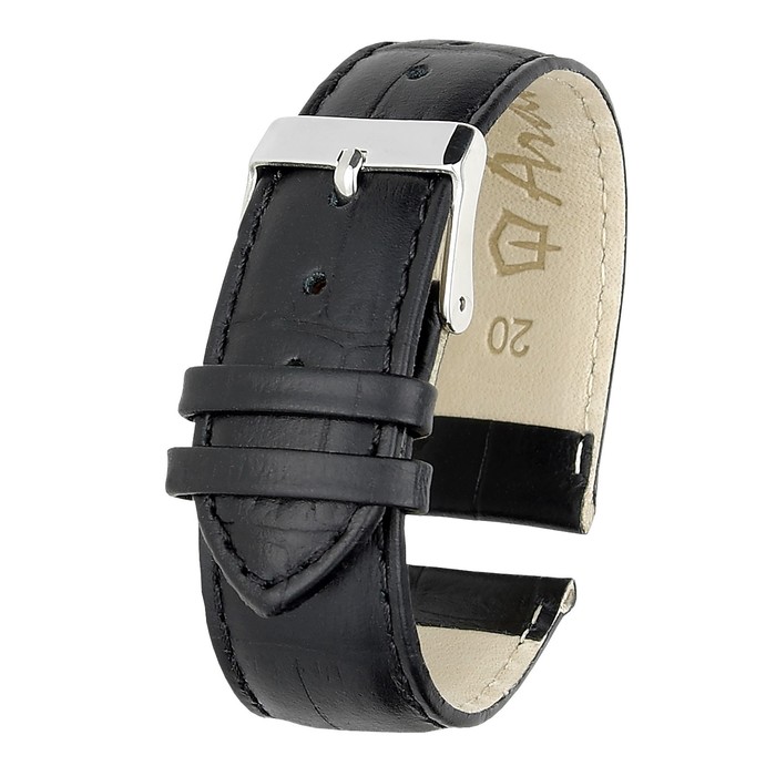 Ремешок для часов, 20 мм, запряжник 80 мм, горт 120 мм, натуральная кожа, черный
