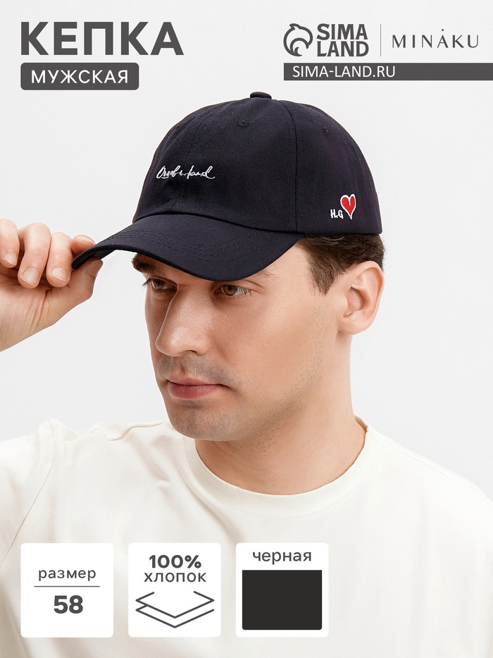 Бейсболка мужская MINAKU с вышивкой цвет черный , размер 56-58