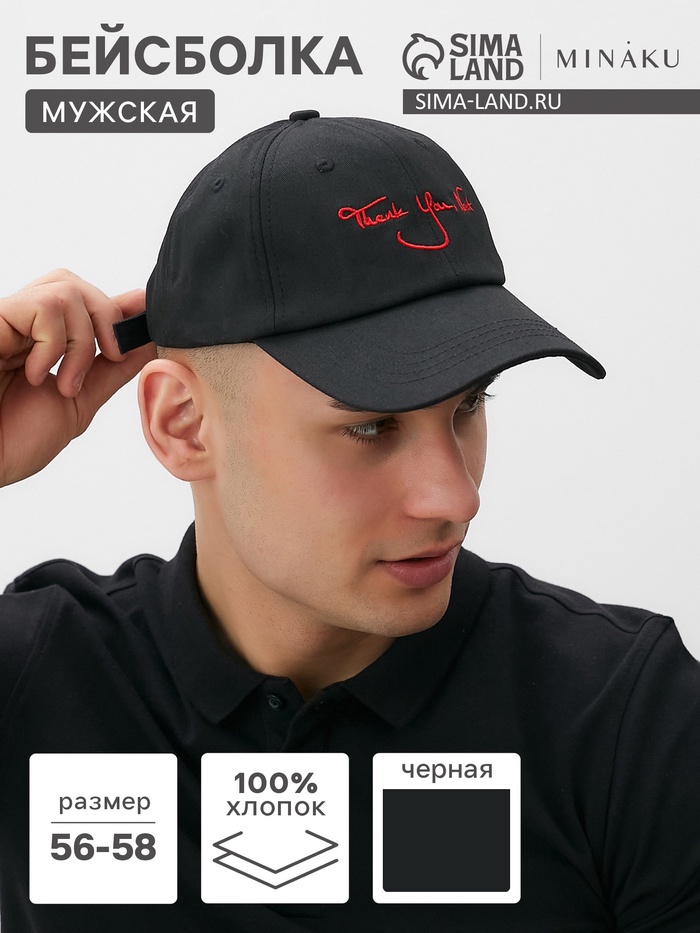 Бейсболка мужская с надписями MINAKU, размер 56-58, 100% хлопок, чёрная