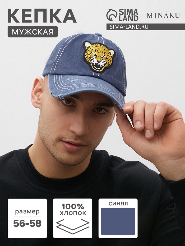 Кепка мужская MINAKU "Leopard", цвет синий, р-р 56-58