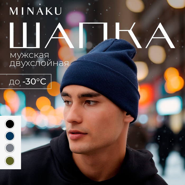 Шапка мужская двухслойная с отворотом, one size, цвет синий
