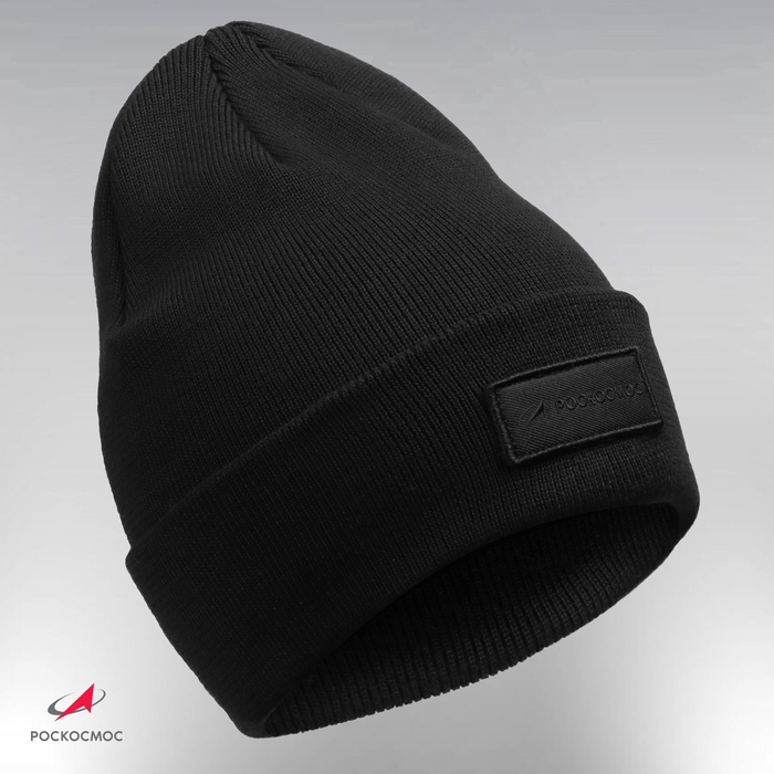 Шапка с отворотом РОСКОСМОС х ONLYTOP, р. 56-58, чёрная