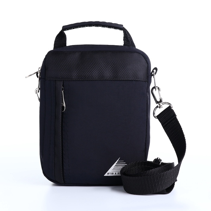 Сумка мужская на молниях RISE, длинный ремень, цвет чёрный