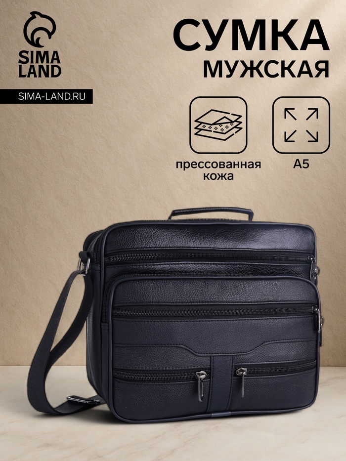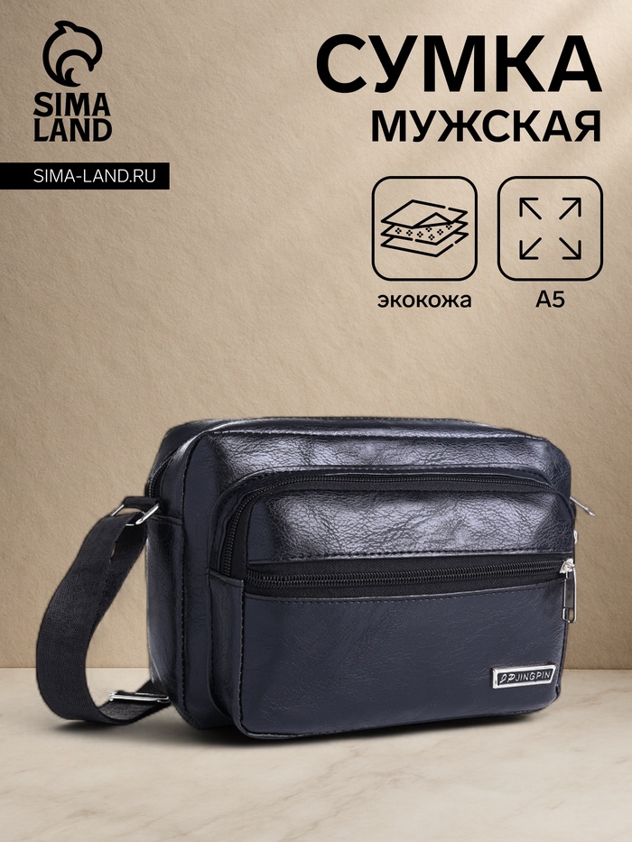 Сумка мужская через плечо на молнии, 3 наружных кармана, чёрная