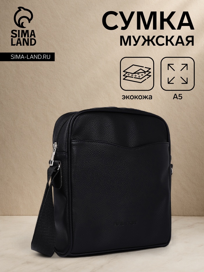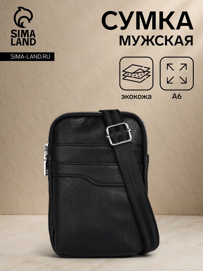 Сумка мужская через плечо на молнии, наружный карман, чёрная