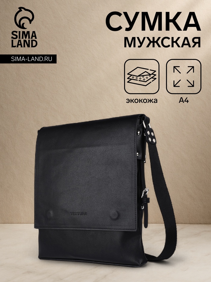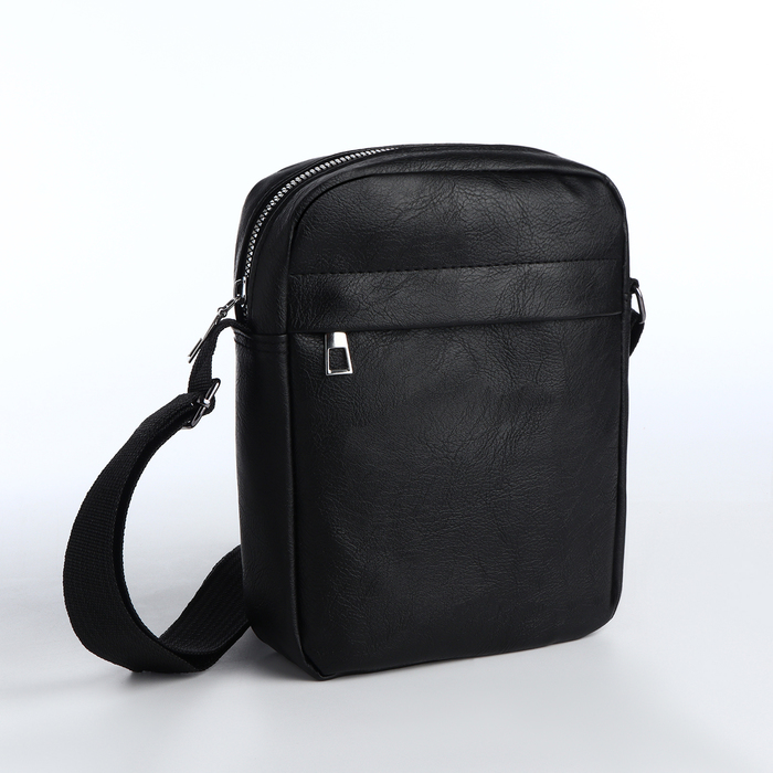 Сумка мужская через плечо на молнии TEXTURA, 3 наружных кармана, чёрная
