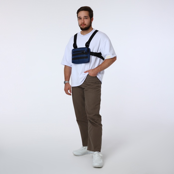Сумка нагрудная на молнии, наружный карман, синяя