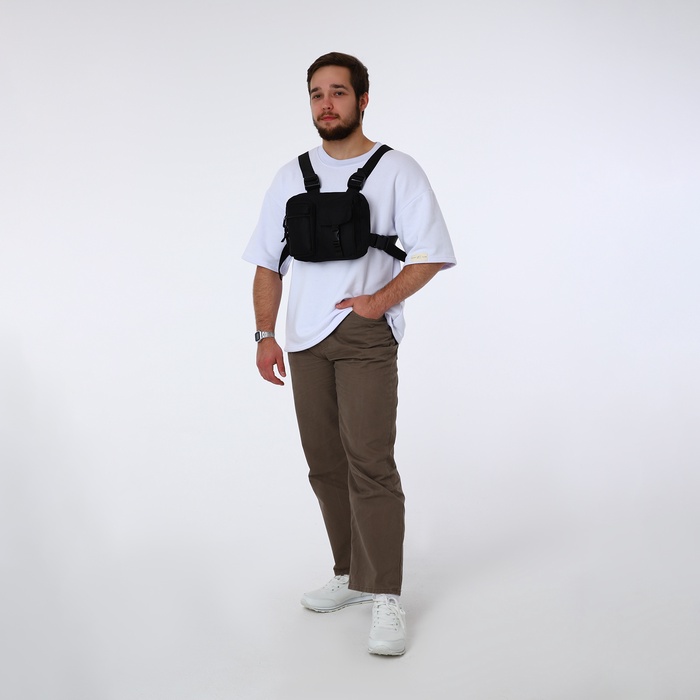 Сумка нагрудная на молнии, 2 наружных кармана, чёрная