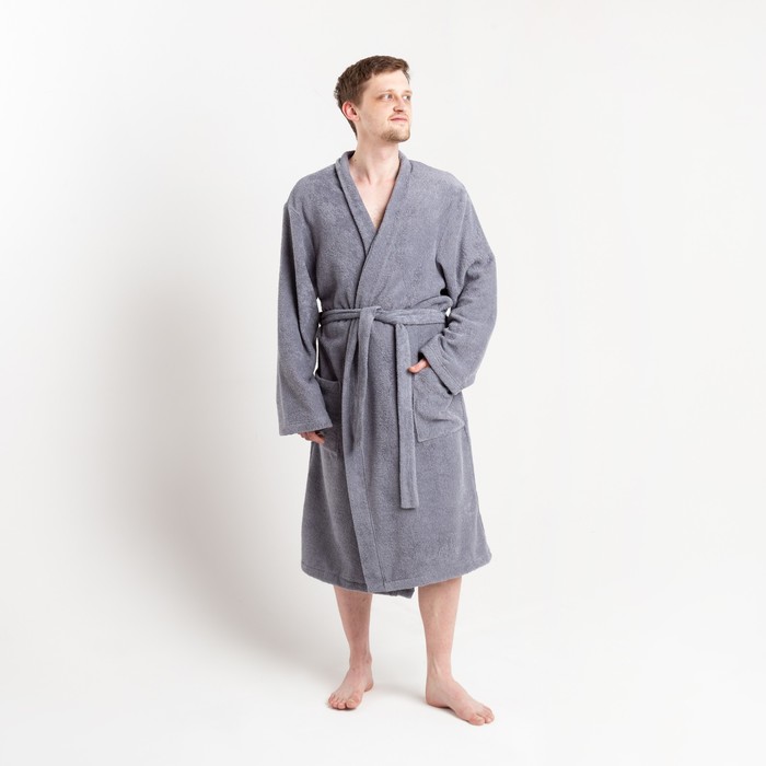 Халат махровый Экономь и Я, мужской размер 52-54 цвет серый, 100% хлопок с AIRO, 320 г/м2