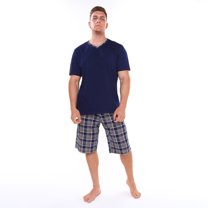 Комплект (футболка/шорты) мужской, цвет синий/клетка, размер 66