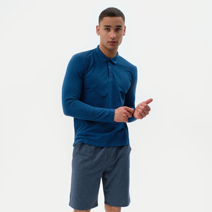 Футболка поло с длинным рукавом мужская MINAKU синяя, р-р 52
