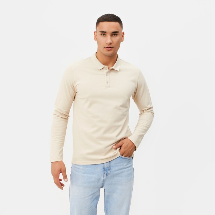 Футболка поло с длинным рукавом MINAKU бежевая, р-р 52