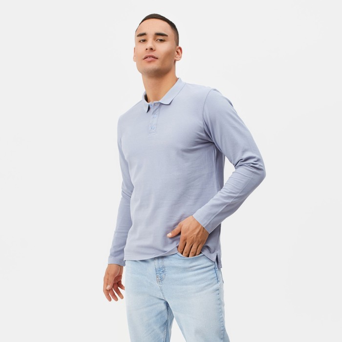 Футболка поло с длинным рукавом мужская MINAKU серая, р-р 46
