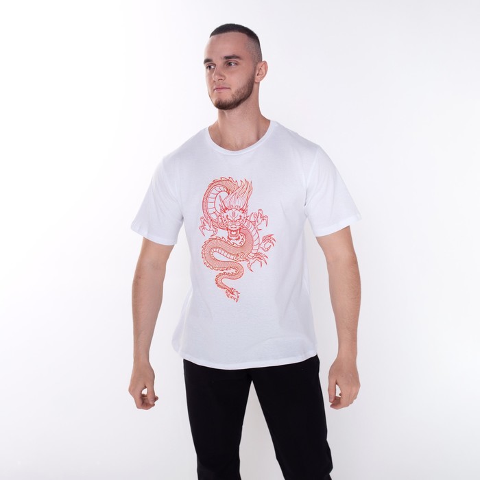 Футболка мужская «Дракон», белая, принт красный, размер 52
