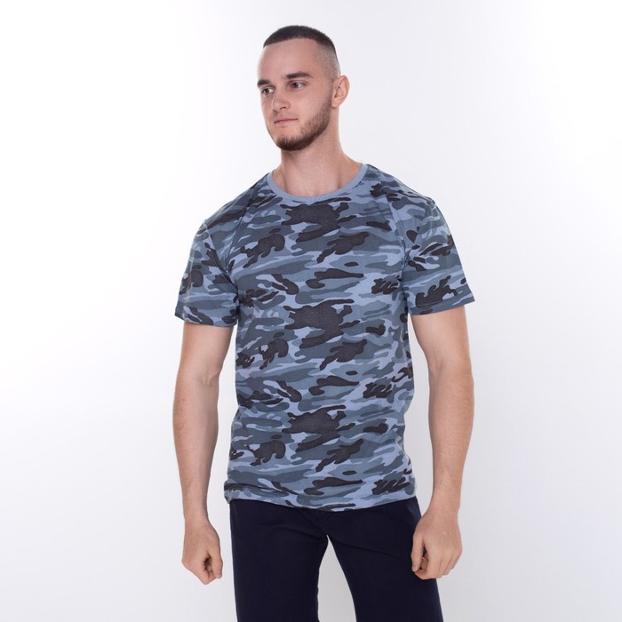 Футболка мужская камуфляж пятна, цвет серо-голубой, размер 54