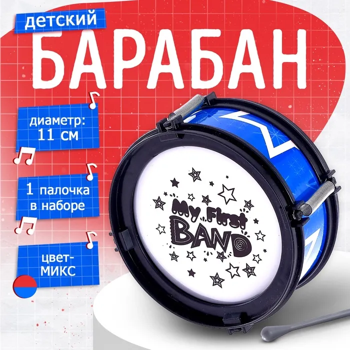 Барабанная установка «Басист», 5 барабанов, тарелка, палочки, стульчик, педаль, МИКС