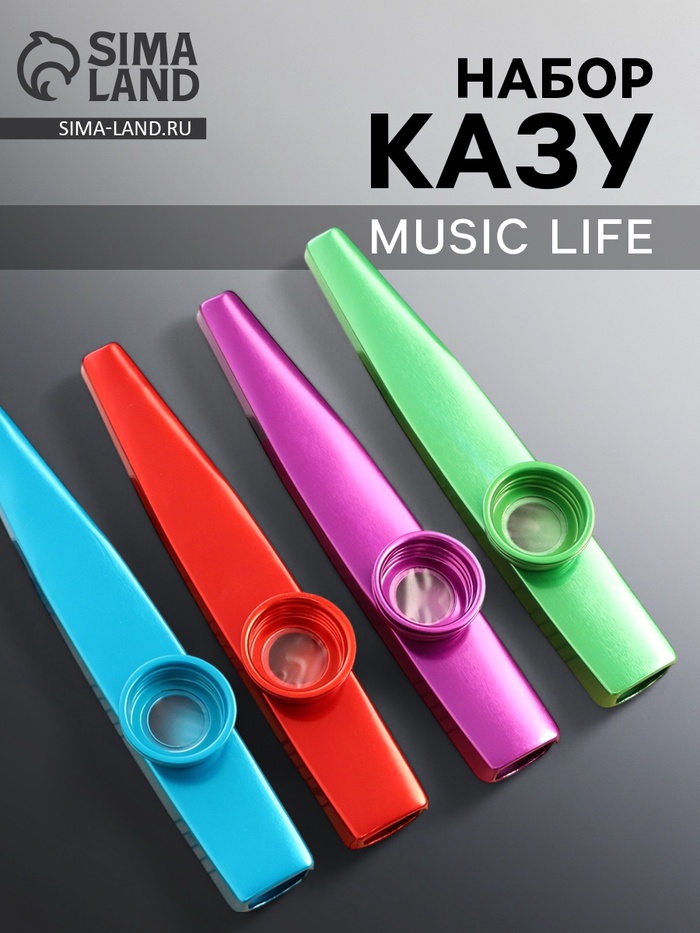 Казу Music Life набор 4 штуки, синий, красный, фиолетовый, зеленый, металл