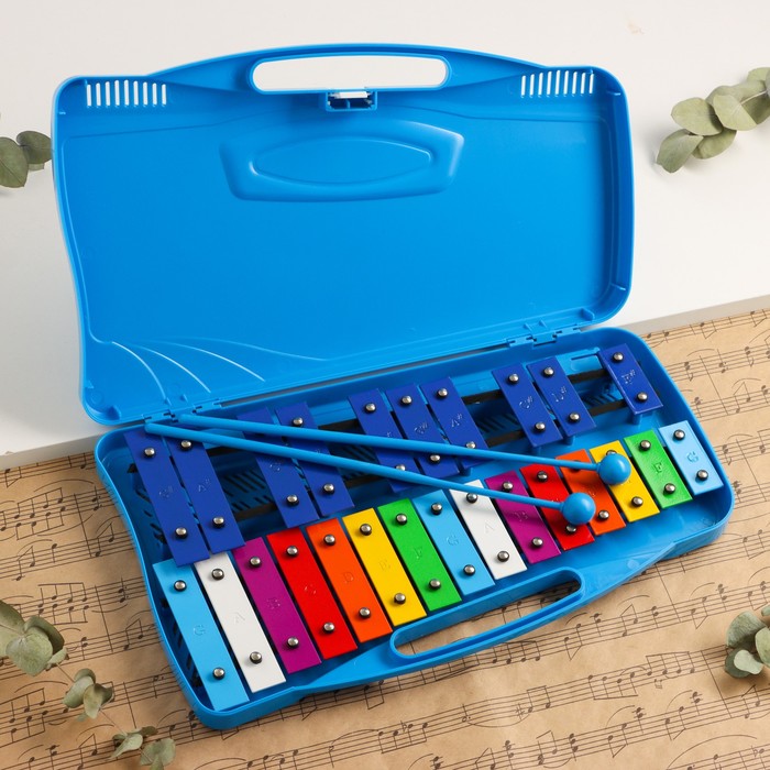 Металлофон музыкальный инструмент Music Life, 25 тонов, футляр, 2 палочки, синий
