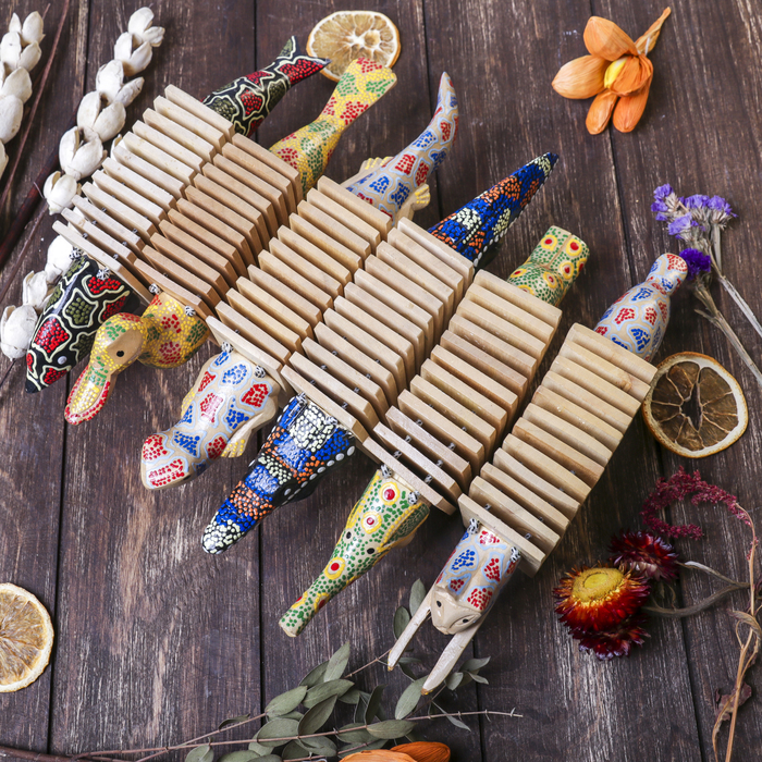 Сувенирный музыкальный инструмент "Трещотка крокодил пятнистый" дерево 4x27x9 см МИКС