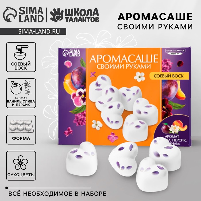 Аромасаше своими руками. Набор для создания ароматической фигурки из соевого воска «Сердечки с сухоцветами»