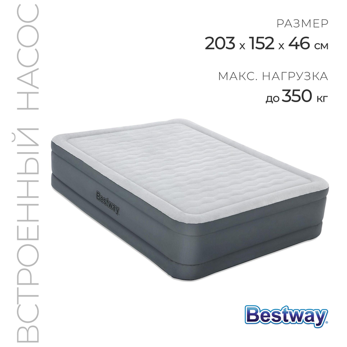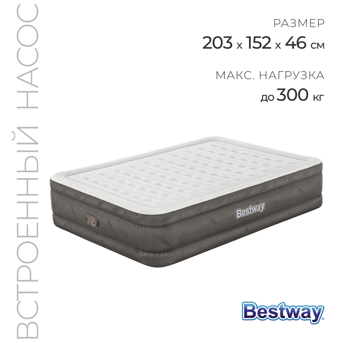 Кровать надувная Bestway Queen, 203×152×30 см, со встроенным электронасосом, 67836