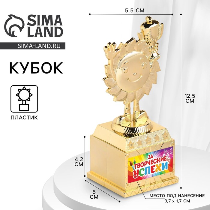 Наградная фигура детская «За творческие успехи», кубок, пластик, золото, 12,5 х 5,5 х 5 см.