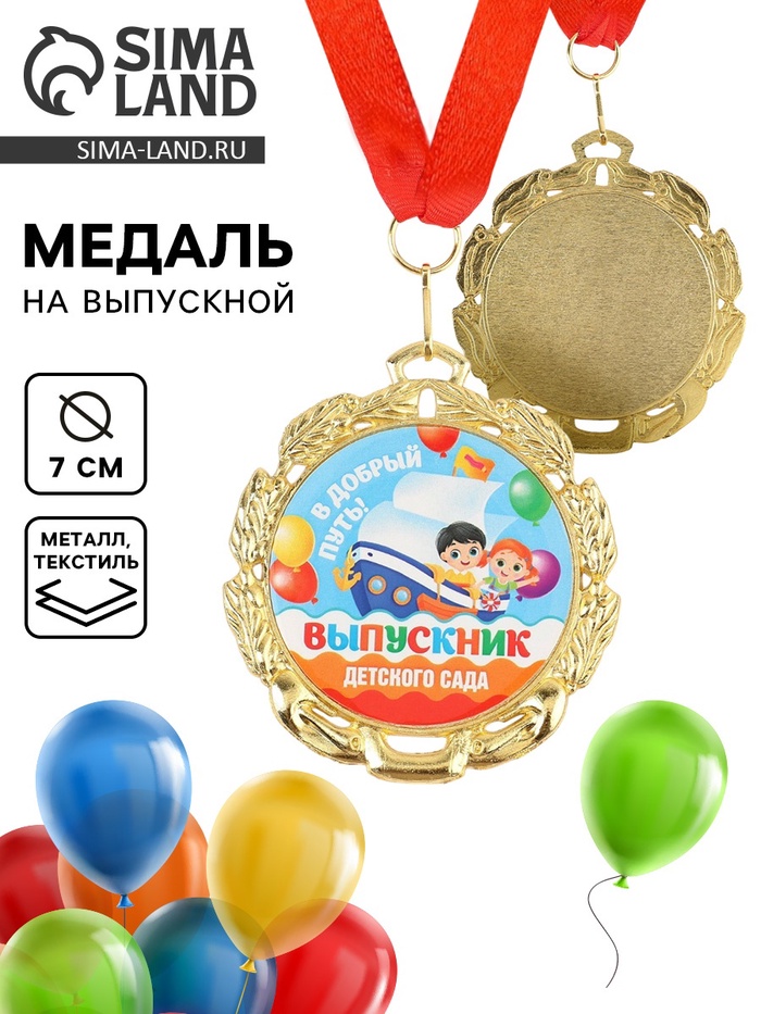 Медаль детская на выпускной «Выпускник детского сада», на ленте, золото, металл, d=7 см