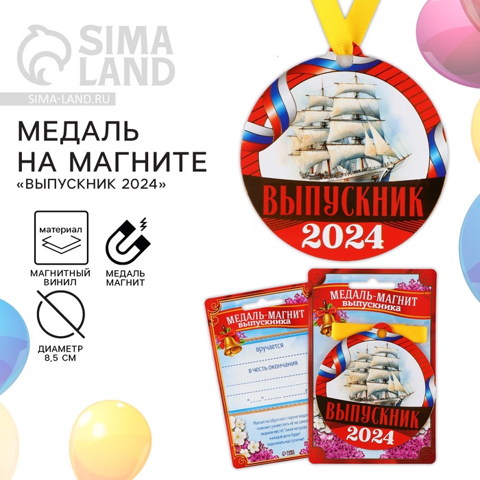 Медаль на магните на Выпускной «Выпускник 2024», 8,5 х 9 см